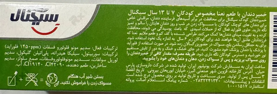 بررسی تخصصی ترکیبات خمیردندان سیگنال مناسب کودکان 13-7 سال با طعم نعنا