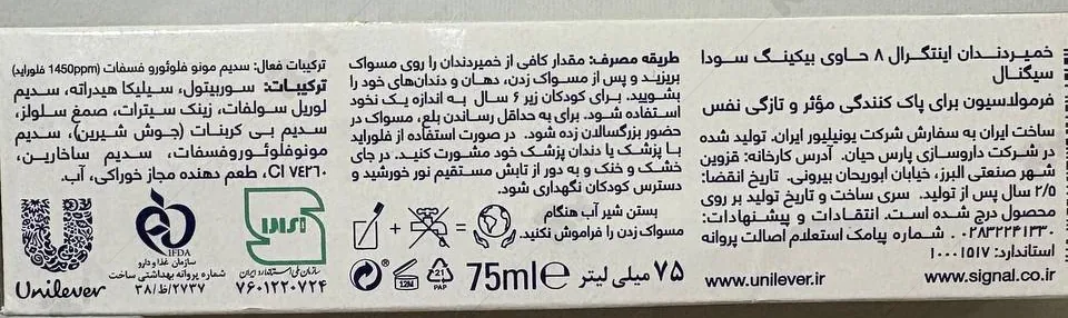 خمیردندان چندمنظوره سیگنال مدل اینتگرال 8 سفیدکننده حجم 75 میلی لیتر