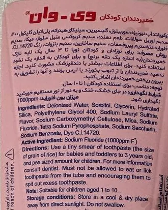 بررسی تخصصی ترکیبات خمیر دندان کودک با طعم توت فرنگی وی وان