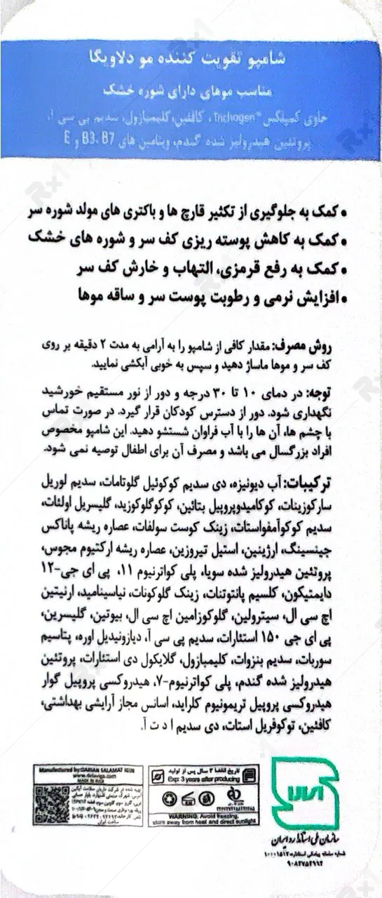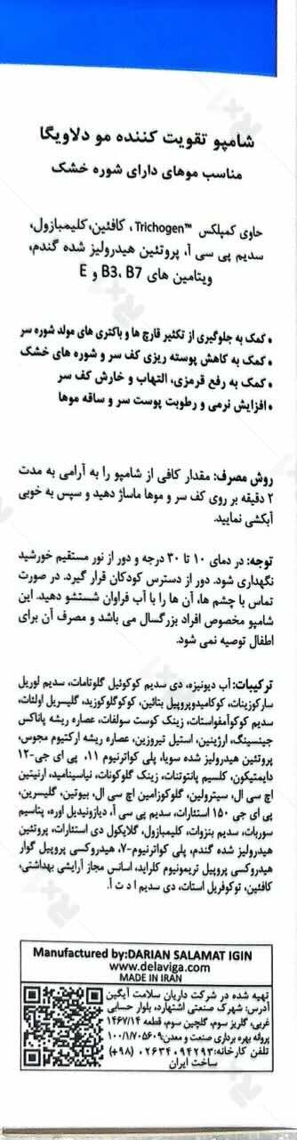شامپو تقویت کننده مو دلاویگا مناسب مو دارای شوره خشک (داروخانه آنلاین نسخه اول)