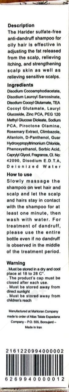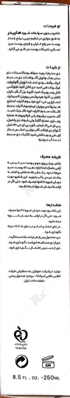 بررسی تخصصی ترکیبات شامپو ضدشوره قوی هاریدر بدون سولفات