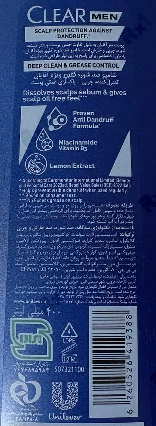 بررسی تخصصی ترکیبات شامپو ضدشوره کلییر آقایان مدل کنترل کننده چربی
