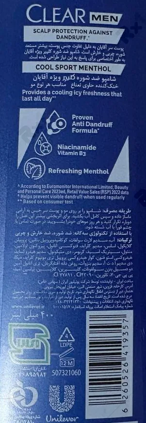 شامپو ضد شوره آقایان خنک کننده نعنایی کلیر حجم 400 میلی لیتر (داروخانه آنلاین نسخه اول)