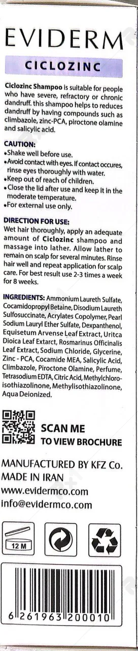 Eviderm Ciclozinc Anti Dandruff Shampoo