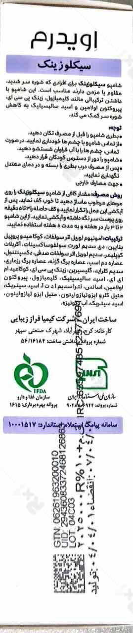 بررسی تخصصی ترکیبات شامپو ضد شوره اویدرم سیکلوزینک