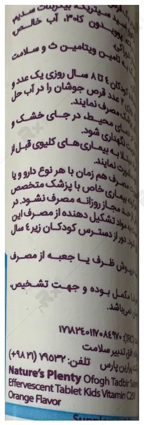 قرص جوشان ویتامین C 250 میلی گرم کودکان نیچرز پلنتی 20 عدد