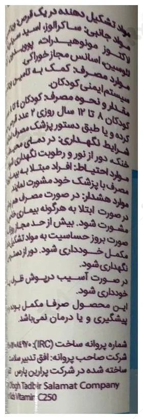 ماده موثره اصلی: ویتامین C (250 میلیگرم)