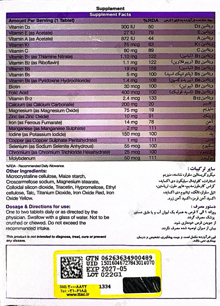 خیر، این محصول کالری ندارد. اما در افرادی که دچار کمبود ویتامین (بهویژه گروه B و زینک) هستند، ممکن است با بهبود سوختوساز، اشتها به حالت طبیعی بازگردد. برای کنترل این مورد، مصرف قرص بعد از وعده غذایی توصیه میشود.