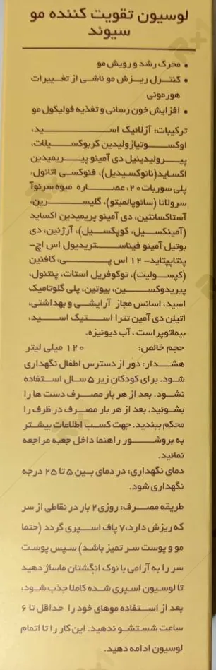 بررسی تخصصی ترکیبات لوسیون ضد ریزش و تقویت کننده مو سیوند مدل MFB