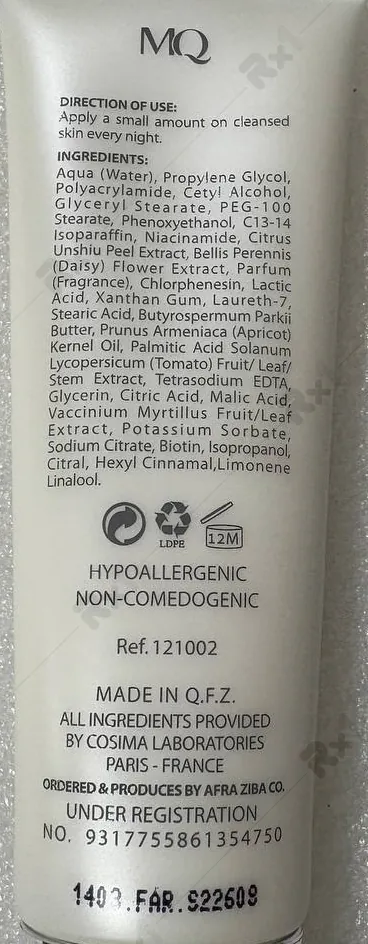 بررسی تخصصی ترکیبات کرم شب لایه بردار ام کیو AHA 10 درصد