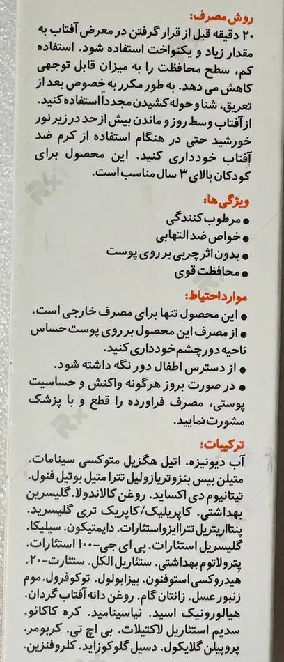 بررسی تخصصی ترکیبات کرم ضدآفتاب کودک مای SPF50