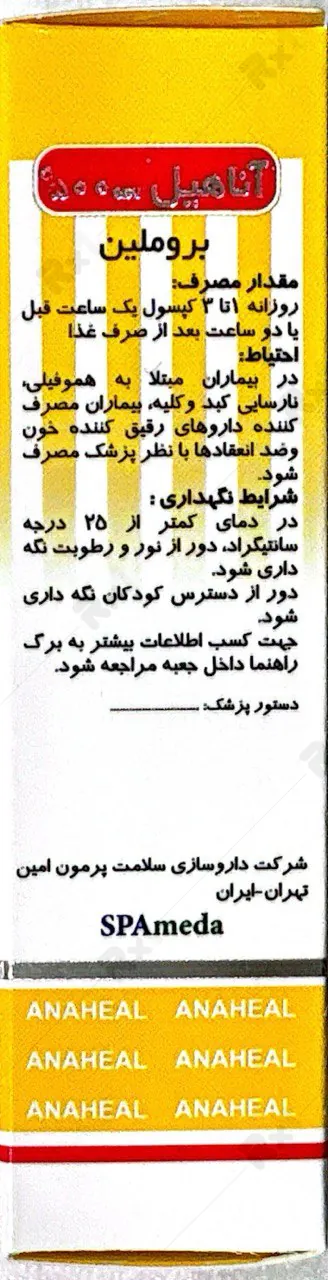 کپسول بروملین آناهیل 500 میلی گرم بسته 30 عددی