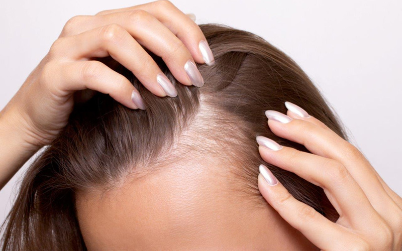 • در زنان: به‌صورت کم‌پشتی قابل توجه و منتشر در ناحیه فرق سر نمود پیدا می‌کند.
